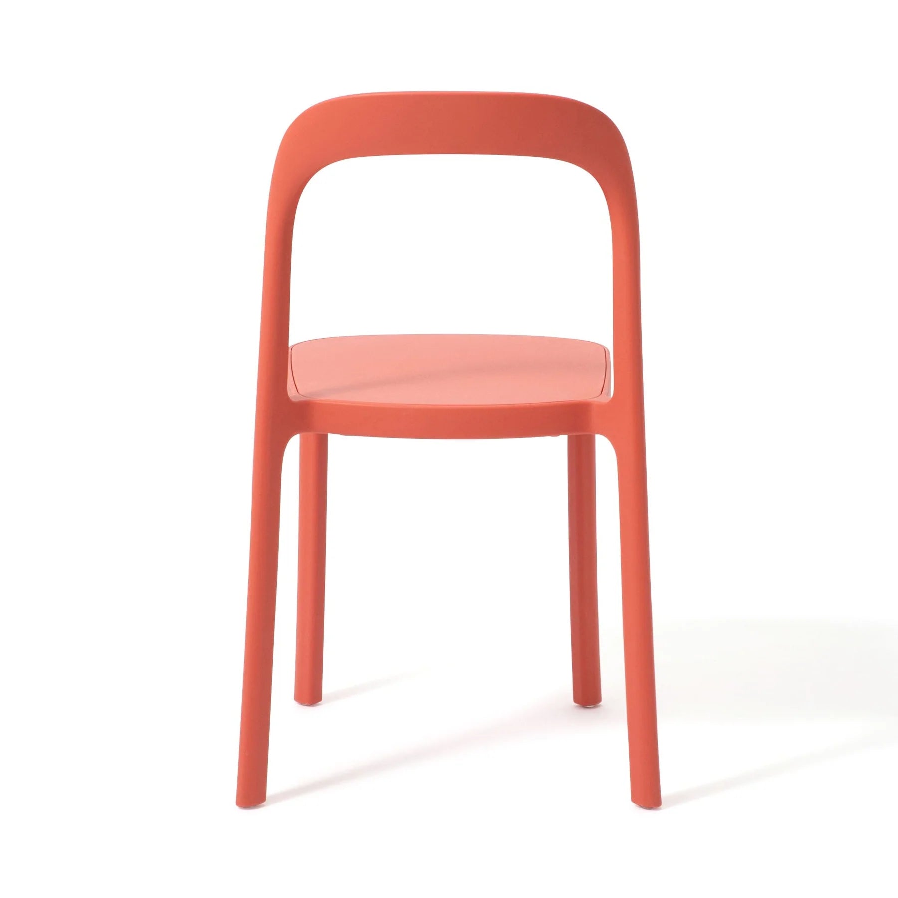 This resin chair features a graceful, one-piece curved design and vibrant colors, adding a touch of class to any room. It's stackable, saving space and making it easy to clean.